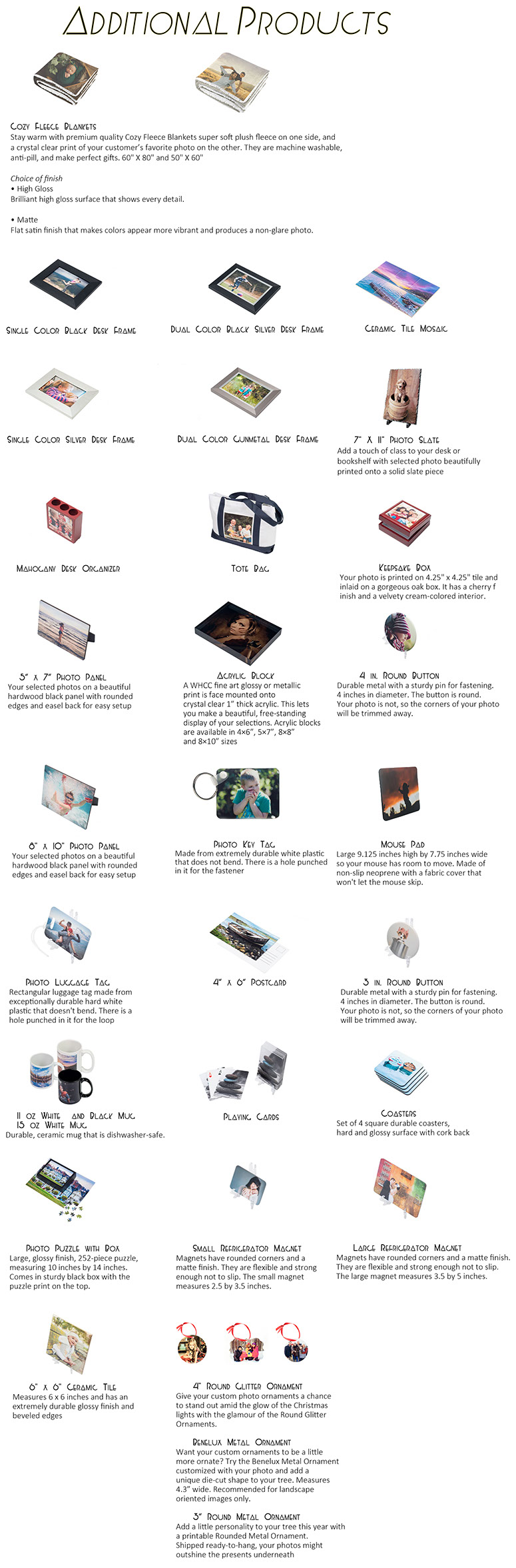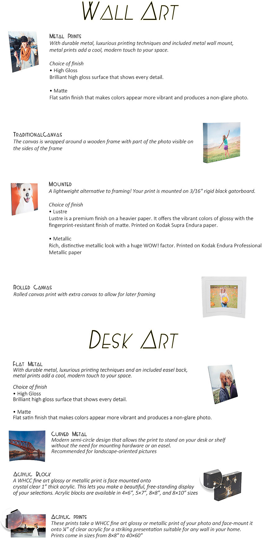 Purchase photos as Paper Prints, Wall Art, Desk Art, Keepsakes, Albums, Greeting Cards, or purchase multiple photos in a variety of styles by clicking shopping basket icon next to any picture